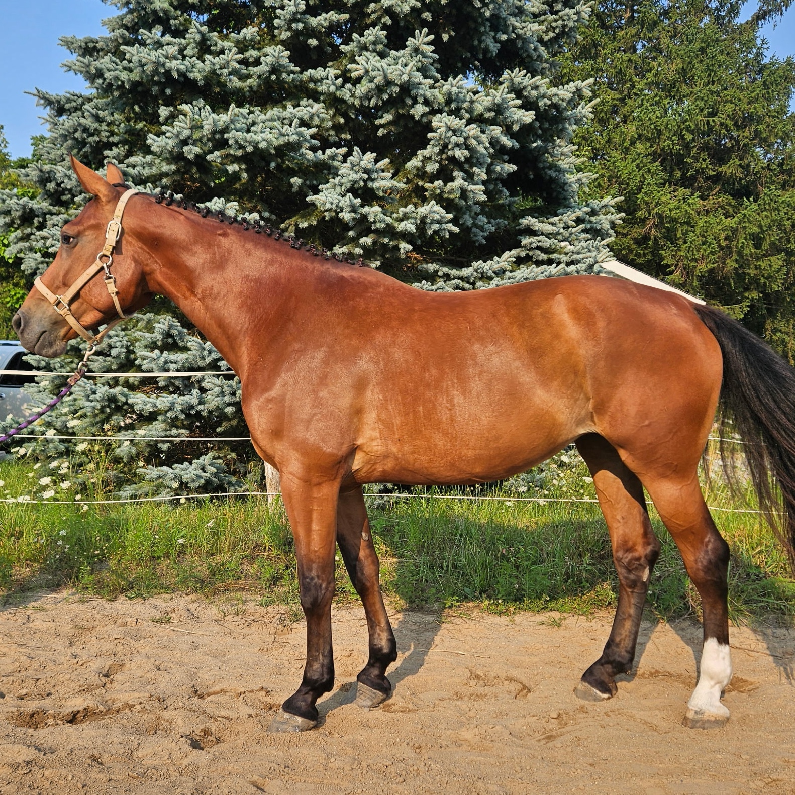 Cruller is a 2020 Canadian Sport Pony gelding by Fire Fly’s Tugs On My Heart. Currently w/t/c and learning to jump. Attended his first show summer 2025. Available for sale.