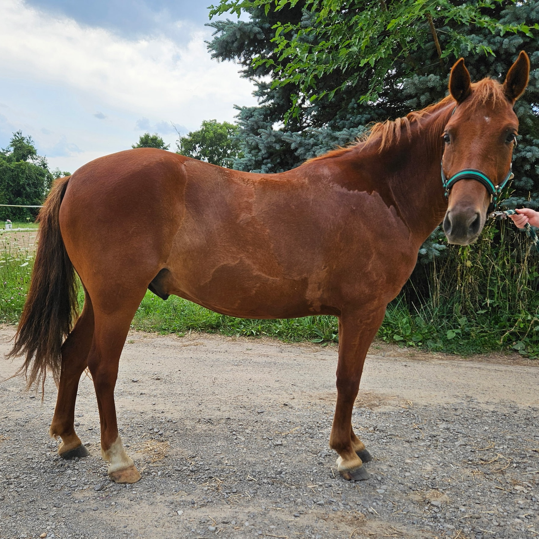 Friendly is a 15H Appendix gelding. Another barn favourite, he loves to jump and always does well in the hunter ring. While his name is Friendly, he’s actually quite shy.