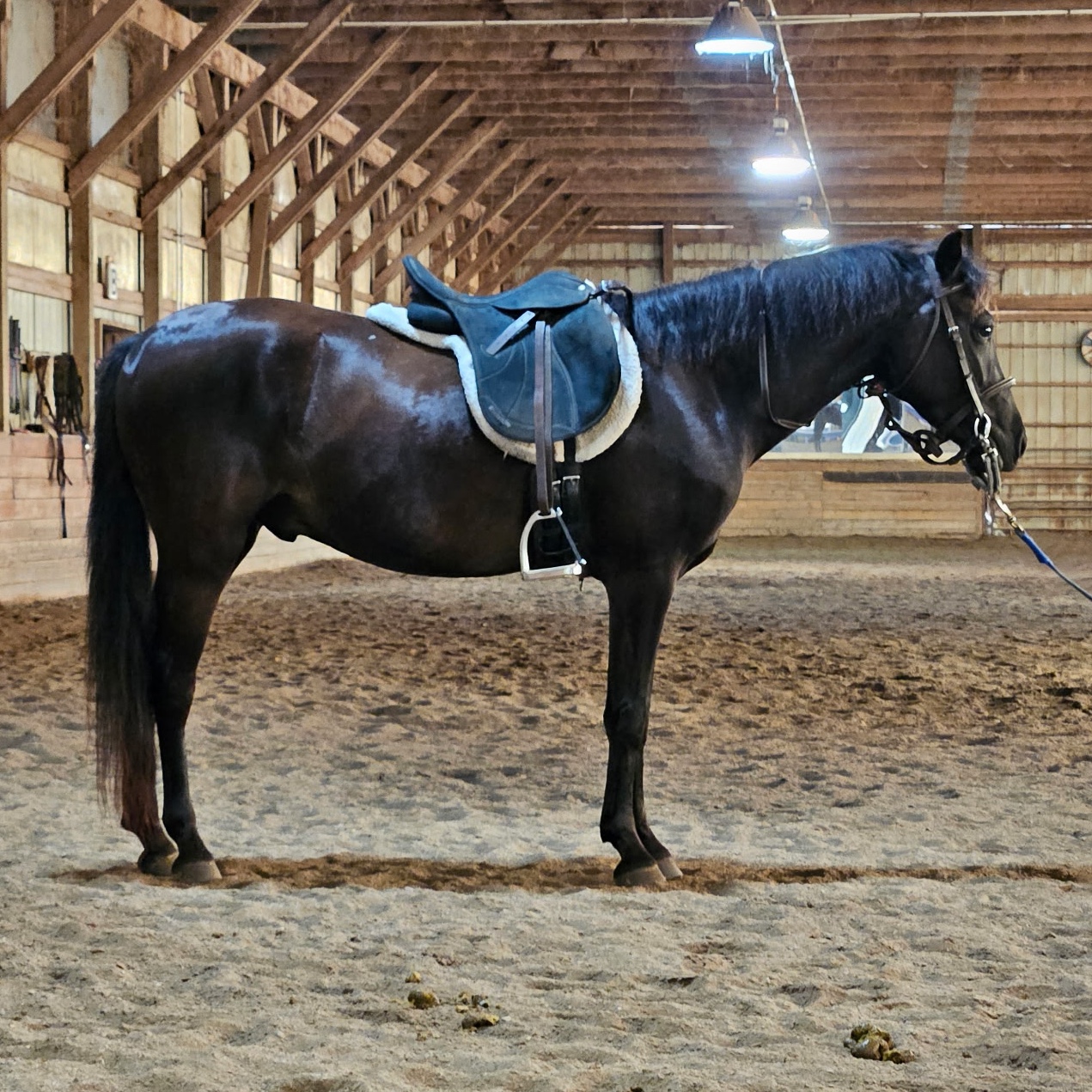 Zeus is a 15H Morgan gelding who has traveled all over North America as a chariot horse with famous trick riders. These days he loves teaching new students correct riding. He is available for flat only, and is very accomplished in the dressage ring.